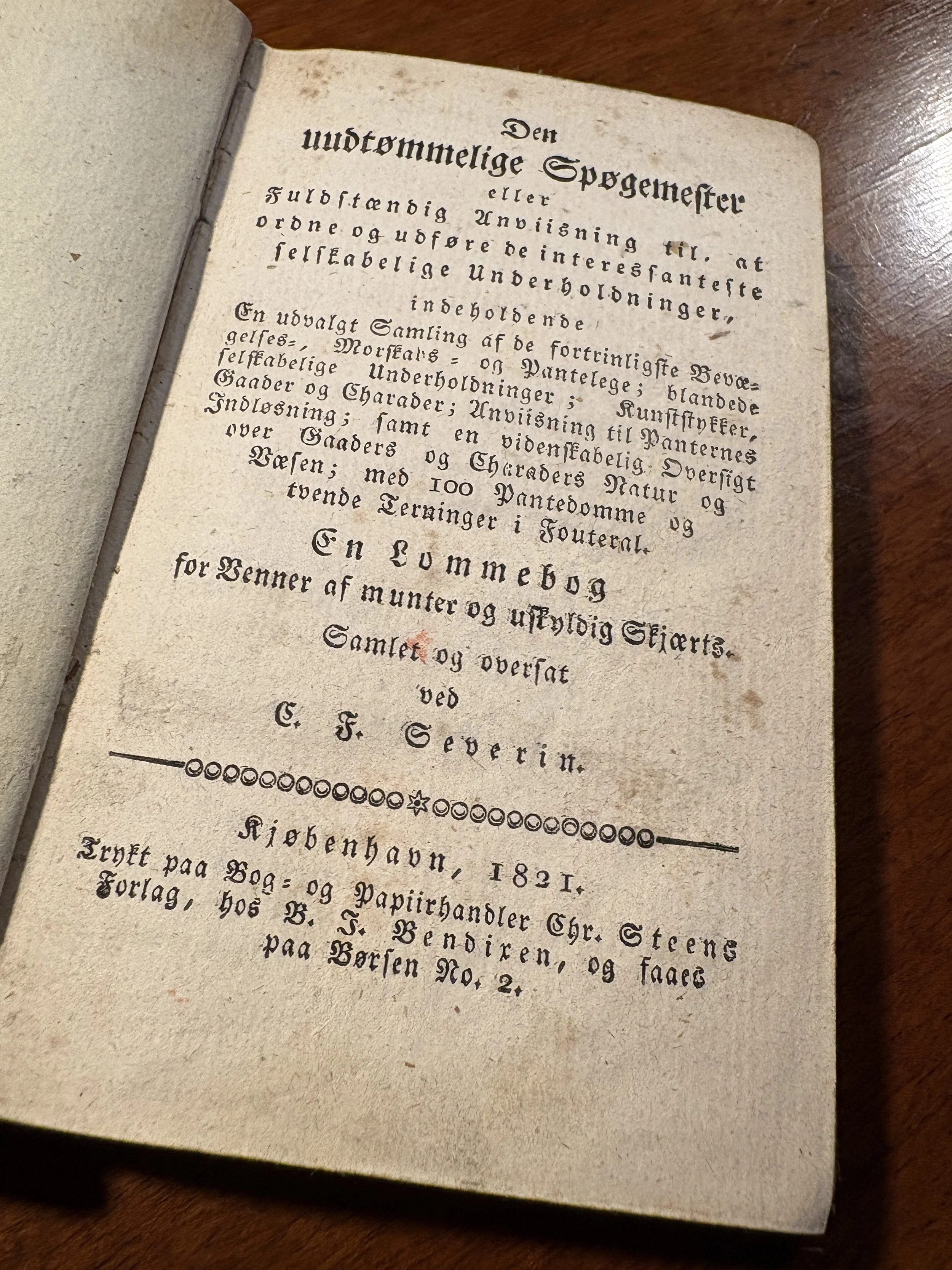Jeg blev så glad ved gensynet af "Den Uudtømmelige Spøgemester - Fuldstændig Anvisning til at ordne og udføre de interessanteste selskabelige Underholdninger".