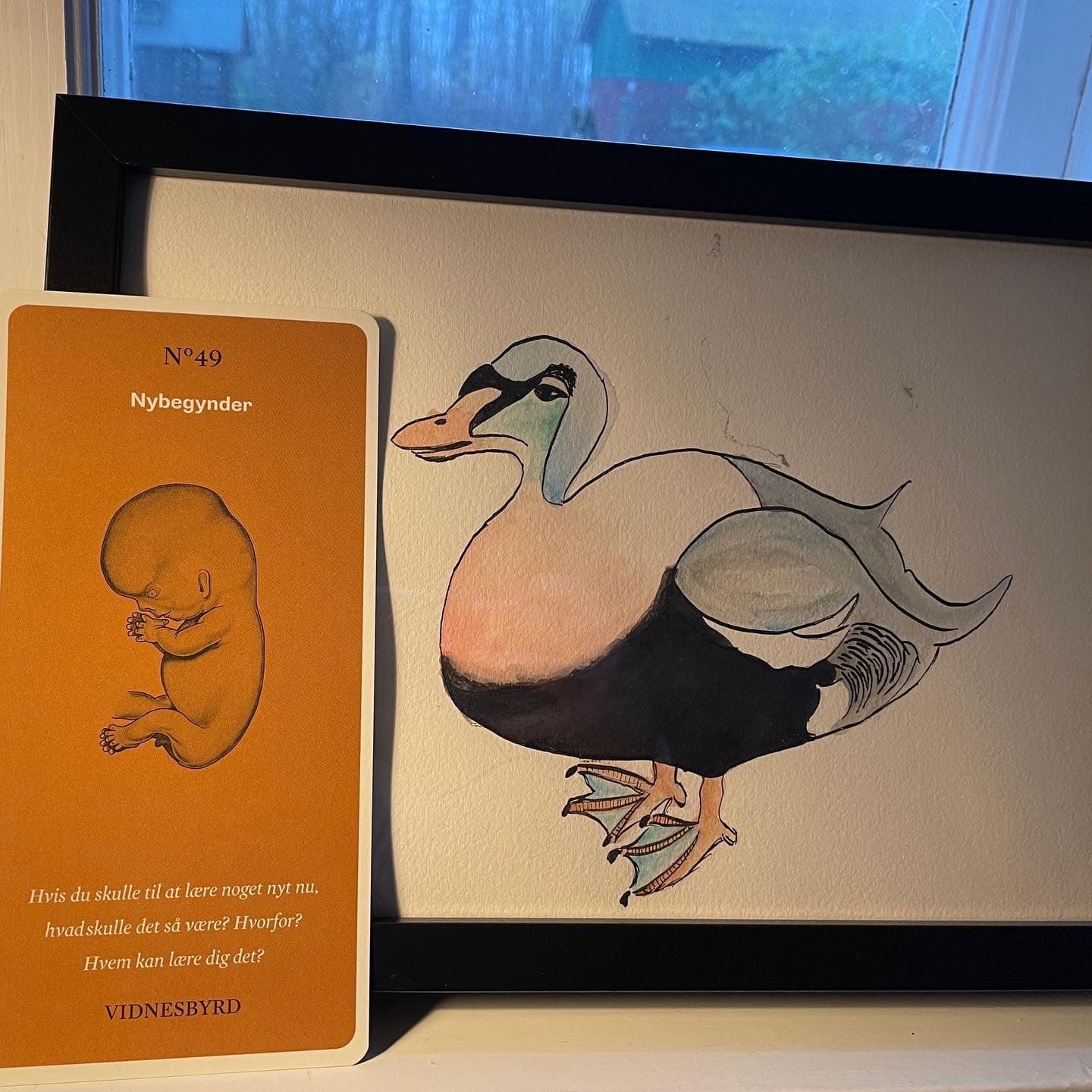 Underviseren – Gudrun Katrine Heltoft – var VIRKELIG god. Hun formåede både at den 3-årige og den dengang 47-årige tryllebundet i lang tid. Og hun fik lært mig en teknik, jeg siden har været fuldstændig vild med. Med bambuspen, japansk blæk og akvarel. Og taget i betragtning, at jeg reelt ikke kan tegne, siger det meget hendes formidlingsevner, at hun lærte mig at tegne edderfuglen på billedet i løbet af et par koncentrerede timer.